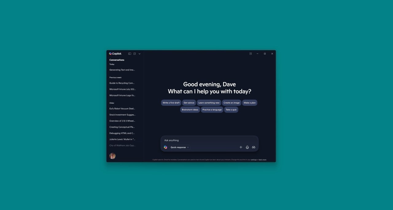Microsoft Copilot in Windows 11 breaks new ground—making AI-powered text and image generation simple, fast, and accessible to everyone. Incorporate Microsoft Copilot into your daily workflow to automate routine writing, brainstorm new ideas, create stunning visuals, and focus more on what matters.